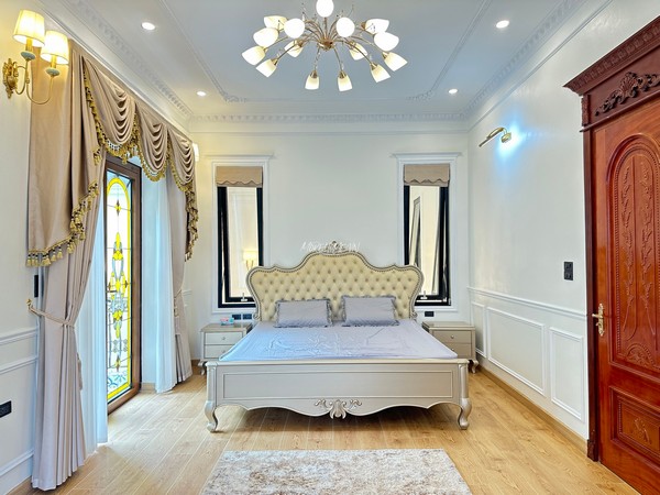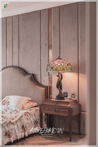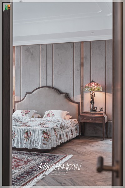 - Giường ngủ tân cổ điển với sự kết hợp tinh tế giữ gỗ tự nhiên và đầu giường bọc.