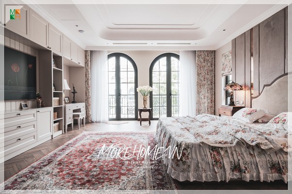 Giường ngủ tân cổ điển gỗ tự nhiên kết hợp đầu giường bọc