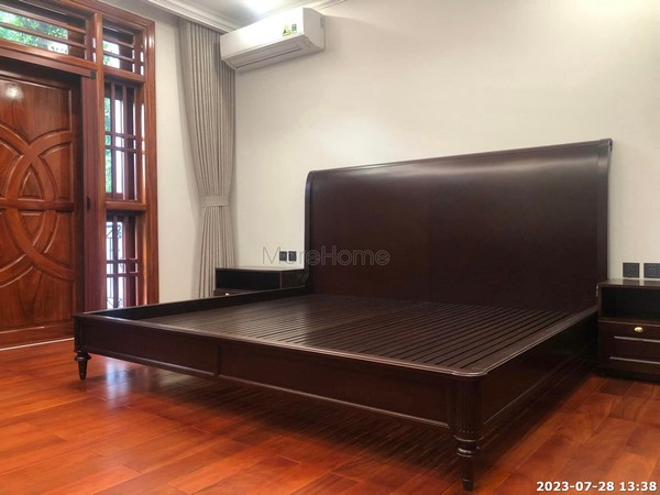 Giường ngủ tân cổ điển gỗ tự nhiên kết hợp đầu bọc da đâu vai giường.