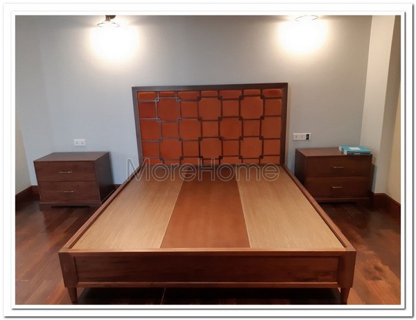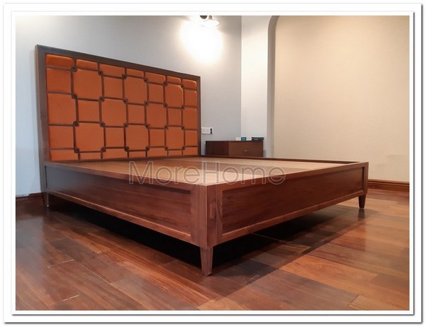 - Giường ngủ tân cổ điển với sự kết hợp tinh tế giữ gỗ tự nhiên và đầu giường bọc.