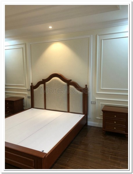 Giường ngủ tân cổ điển gỗ tự nhiên kết hợp đầu giường bọc