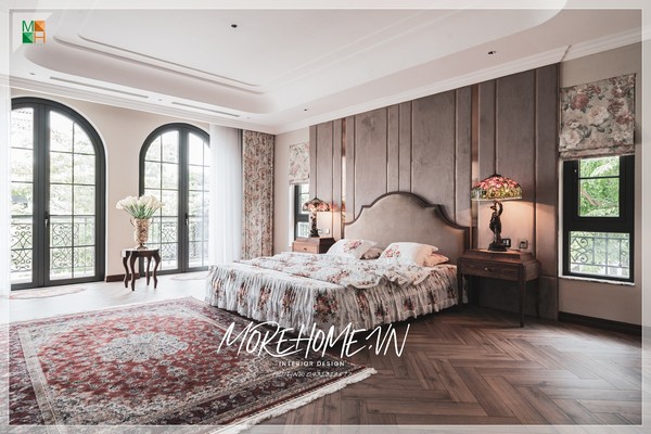 - Giường ngủ tân cổ điển với sự kết hợp tinh tế giữ gỗ tự nhiên và đầu giường bọc.