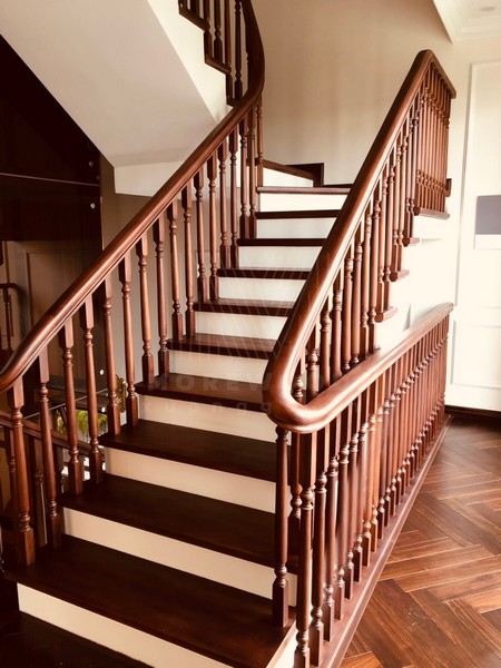 Đặc biệt, mỗi bậc thang được thiết kế 2 nan gỗ song song, giúp khoảng cách an toàn hơn, đảm bảo tính chắc chắn nhưng vẫn giữ được sự thanh thoát, nhẹ nhàng. Đây là sự kết hợp hoàn hảo giữa thẩm mỹ nghệ thuậtcông năng sử dụng, lý tưởng cho những ngôi nhà mang phong cách tân cổ điển.