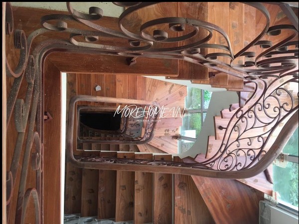 Mẫu cầu thang tân cổ điển được chế tác từ gỗ tự nhiên cao cấp kết hợp với nan sắt tạo hình hoa văn tinh xảo, mang đến vẻ đẹp vừa bề thế, sang trọng vừa tinh tế, nghệ thuật.