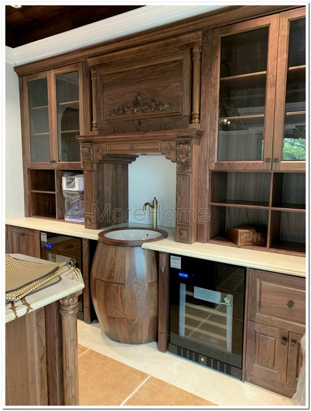 Được chế tác từ gỗ tự nhiên óc chó nhập khẩu bắc mỹ tuyển chọn tỉ mỉ kỹ càng, tủ bếp mang lại sự chắc chắn, bền lâu theo thời gian, đồng thời giữ trọn vẻ đẹp ấm áp của vân gỗ. Bề mặt được phủ lớp sơn cao cấp giúp bảo vệ gỗ tối ưu trước tác động của độ ẩm, nhiệt độ và dầu mỡ trong quá trình nấu nướng, đồng thời tạo nên màu sắc hài hòa, sang trọng, dễ dàng phù hợp với nhiều phong cách nội thất khác nhau.