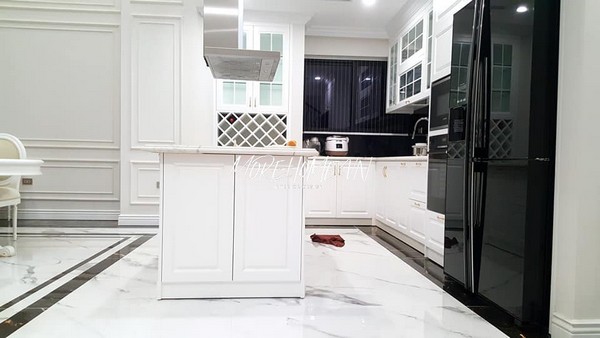 Bên trong tủ được bố trí nhiều ngăn chứa tiện dụng, đáp ứng nhu cầu lưu trữ từ xoong nồi, bát đĩa cho đến gia vị, đồ dùng nhà bếp, giúp căn bếp luôn ngăn nắp và khoa học. Chất liệu đa dạng từ gỗ công nghiệp đến gỗ tự nhiên nhập khẩu bền chắc kết hợp lớp sơn trắng cao cấp vừa tăng tính thẩm mỹ, vừa bảo vệ tủ khỏi ẩm mốc, dầu mỡ trong quá trình nấu nướng.