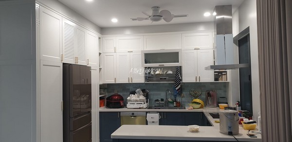 Với gam màu trắng sáng chủ đạo, tủ bếp giúp không gian trở nên rộng rãi, thoáng đãng hơn, đồng thời dễ dàng kết hợp với nhiều phong cách nội thất khác nhau. Thiết kế đơn giản, hiện đại, đường nét vuông vức, tinh gọn tạo nên vẻ đẹp trẻ trung, năng động nhưng vẫn giữ được sự sang trọng cần có cho căn bếp.