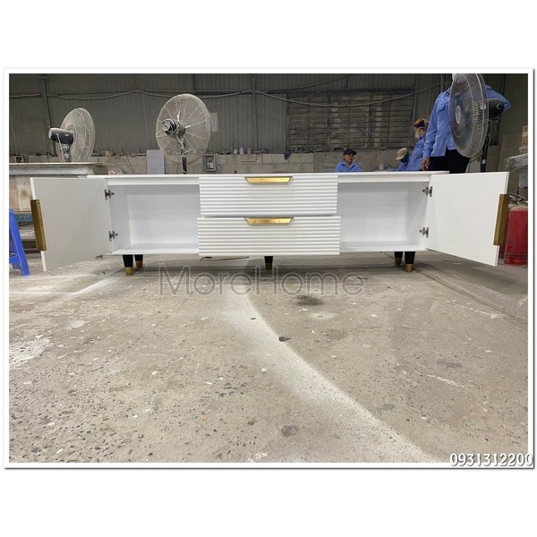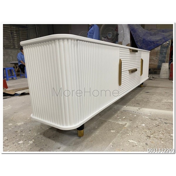 Kệ tivi màu trắng thiết kế nan sọc độc đáo– Thanh lịch và tinh tế cho không gian sống hiện đại.