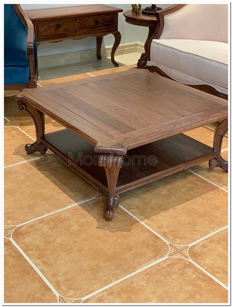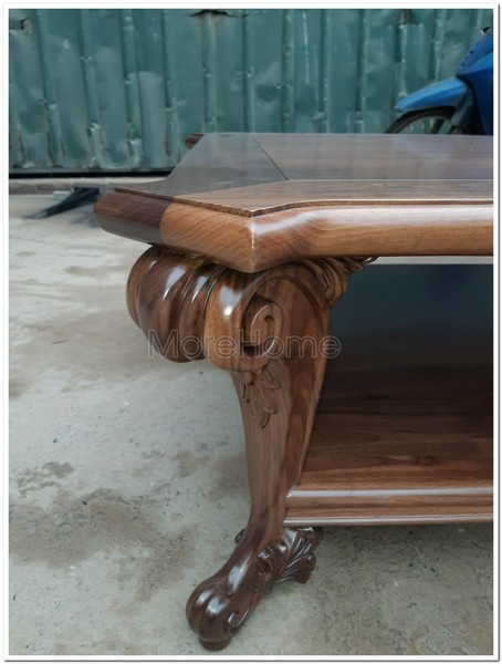 Mang đậm dấu ấn tân cổ điển sang trọng, bàn trà được chế tác từ gỗ tự nhiên óc chó nhập khẩu bắc mỹ cao cấp, nổi bật với hoa văn chạm khắc tinh tế và những đường nét uốn lượn độc đáo. Mỗi chi tiết đều toát lên vẻ đẹp quý phái, tạo điểm nhấn ấn tượng cho không gian phòng khách.