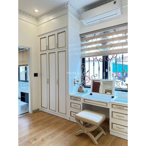 Tủ áo tân cổ điển là điểm nhấn hoàn hảo cho không gian phòng ngủ, vừa mang tính thẩm mỹ cao vừa đáp ứng trọn vẹn nhu cầu lưu trữ.