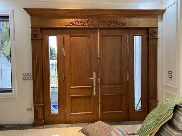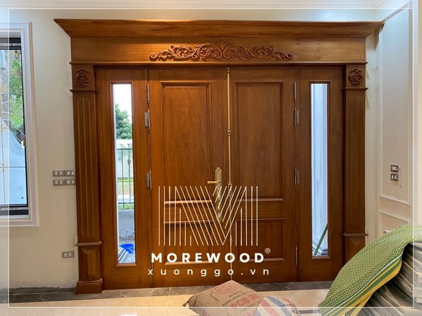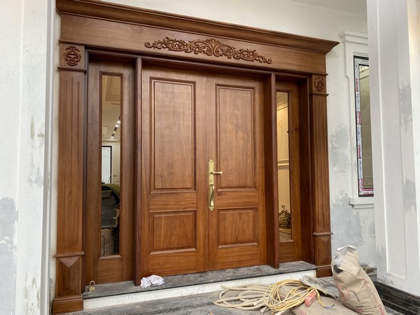 Cửa chính bằng gỗ tự nhiên gõ đỏ Pachy phong cánh tân cổ điển tạo điểm nhấn cho ngồi nhà của bạn