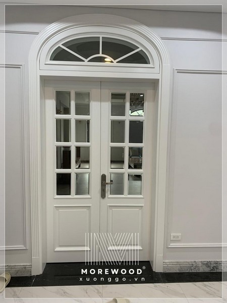 Cửa gỗ tự nhiên sơn màu trắng cao cấp