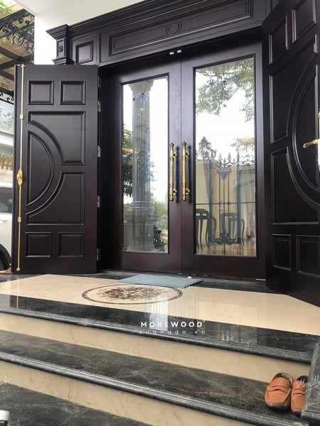 Cửa gỗ tân cổ điển với 2 lớp cửa kết hợp đốc đáo giữa gỗ và kính