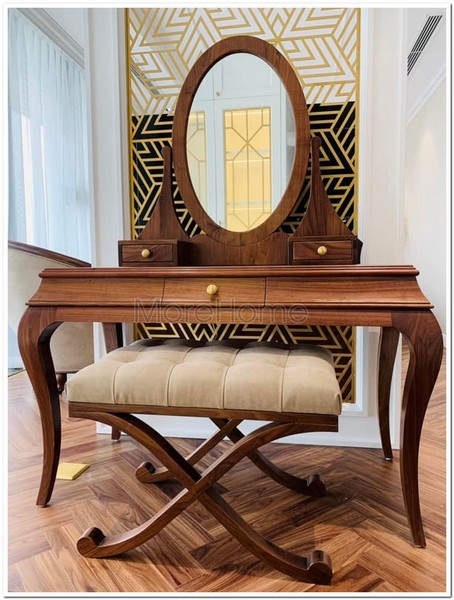 Bàn trang điểm tân cổ điển làm từ gỗ tự nhiên óc chó đây không chỉ là một món đồ nội thất mà còn là một tác phẩm nghệ thuật, biểu tượng của đẳng cấp và sự tinh tế trong không gian phòng ngủ.