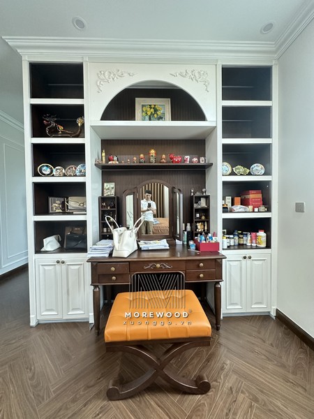 Sự kết hợp tinh tế giữa thiết kế tân cổ điển mềm mạikhung gương sang trọng mang đến một chiếc bàn trang điểm vừa tiện ích vừa tôn vinh vẻ đẹp đẳng cấp cho không gian. Các chi tiết chạm khắc uyển chuyển cùng gam màu nhã nhặn làm nổi bật phong cách quý phái, lãng mạn.